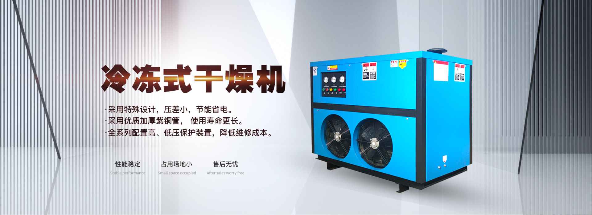 冷凍式干燥機(jī)運用了物理原理,將壓縮空氣中的水分冷凍至露點以下,使之從空氣中析出的空氣干燥機(jī)。受限于水的冰點溫度,理論上來說它的露點溫度可接近于0度,